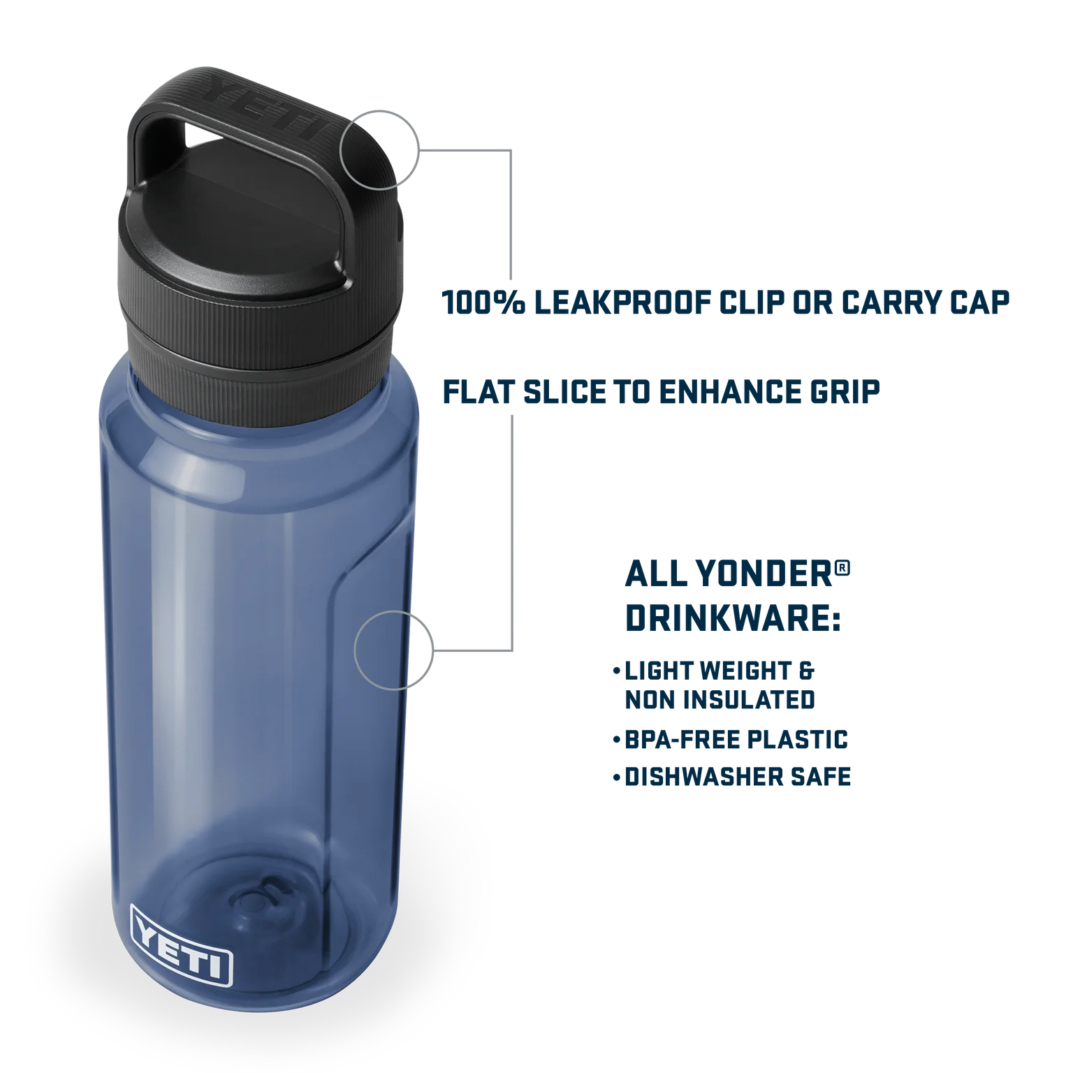 - Compatible with Yonder™ Tether Cap and large Bottle Sling (both sold separately).